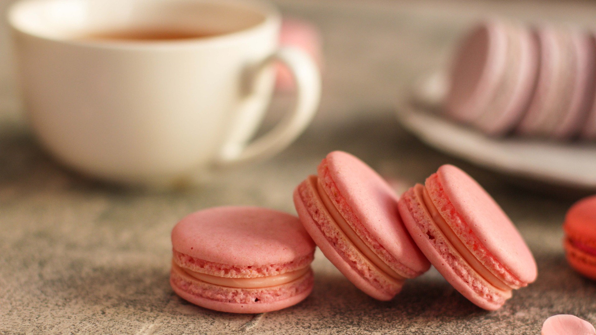 Macarons er små, farverige franske kager, kendt for deres sprøde ydre og bløde, lette indre.