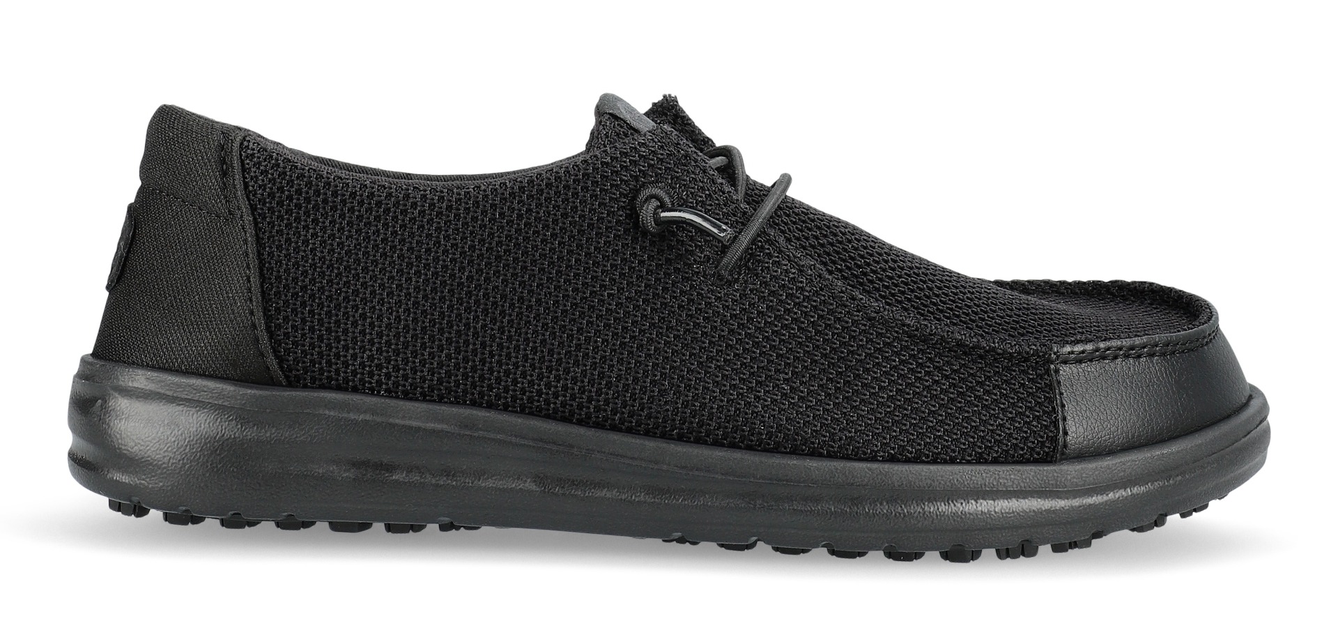 Start de lange arbejdsdage med HEYDUDE’s lette og fleksible arbejdssko. HEYDUDE-skoen er nem at tage på, og overdelen i slidstærk, åndbar polyester og mesh. sikrer høj komfort, mens den skridhæmmende gummisål giver et godt fodfæste på underlaget. Blødt tekstilinderfór for ekstra komfort.
