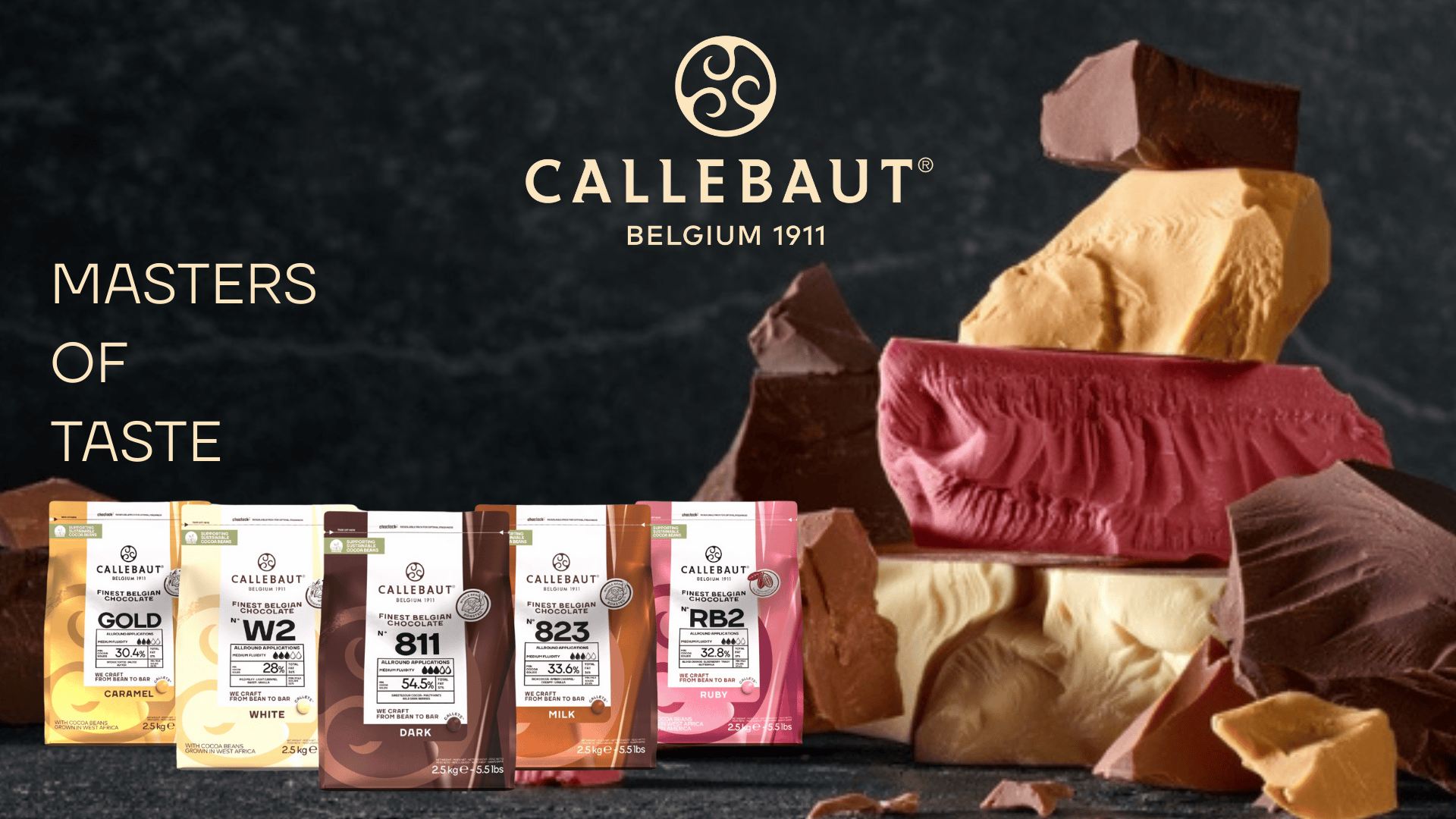 Vi hylder faglighed og kreativitet gennem brand-essensen, Masters of Taste, og tilbyder samtidig support, inspiration og løsninger, der gør det lettere at arbejde professionelt med chokolade.